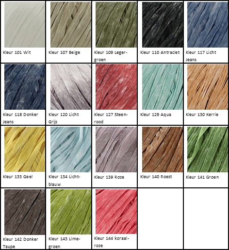 Washi | Kleur 101 Wit, Kleur 107 Beige, Kleur 109 Legergroen, Kleur 110 Antraciet, Kleur 117 Licht Jeans, Kleur 118 Donker Jeans, Kleur 120 Grijs, Kleur 127 Steenrood, Kleur 129 Aqua, Kleur 130 Kerrie, Kleur 132 Zalm Oranje, Kleur 133 Geel, Kleur 134 Lichtblauw, Kleur 139 Roze, Kleur 140 Roest, Kleur 141 Groen, Kleur 142 Donker Taupe, kleur 143 Limegroen, Kleur 144 Koraal-roze |